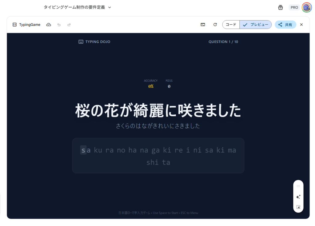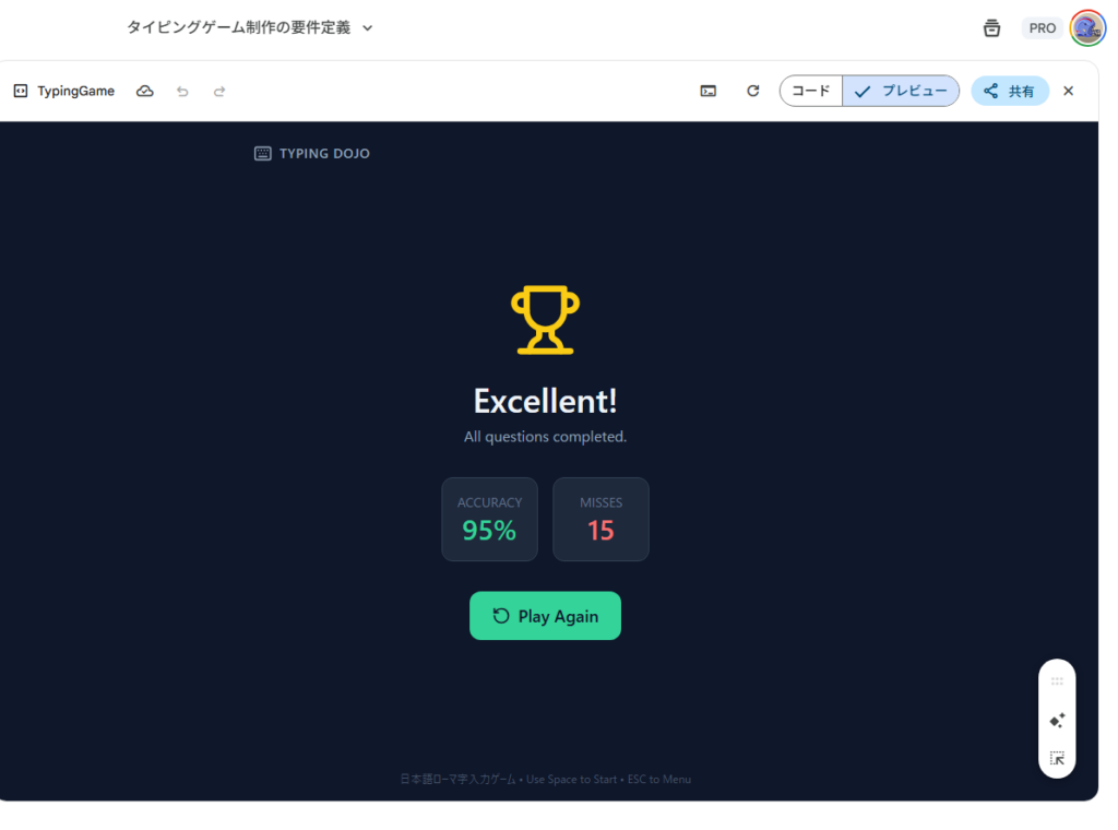 「タイピング道場」というゲームタイトルはGeminiが考えています。