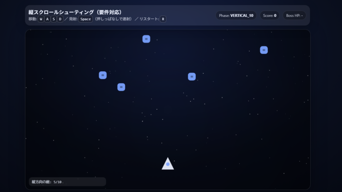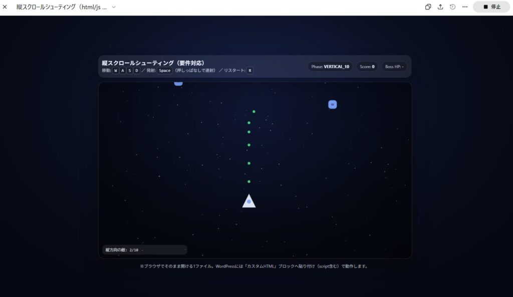 そこで今回は、縦スクロールシューティングゲームをGemini3.0とChatGPT5.2でそれぞれ制作して少し比較してみようと思います。