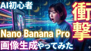 Gemini AI初心者がNano Banana Proでアイキャッチ画像を生成してみた 生成AIがどんどん進化していく中で、気になっている画像生成AI。その中でも最近よく聞くのが「Nano Banana Pro」。Googleの画像生成AIで、いろいろすごいと評判なのですが、具体的に何がすごいのかよくわからないので、今回はNa... 2025.12.18 GeminiNanoBanana ProNotebookLM